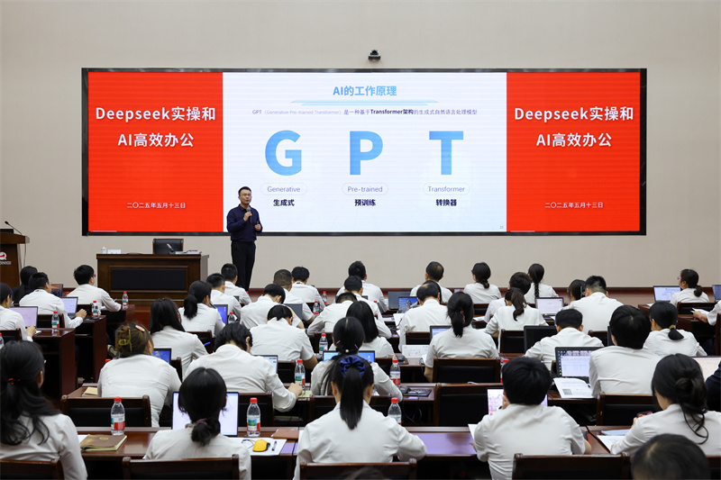 郭总指出,当前多数行业进入存量竞争时代,专业化能力成为企业发展和员工成长的关键。AI技术正重塑职场能力,掌握DeepSeek等工具的应用,是每位员工提升效率、驱动创新的必修课。集团积极响应这一趋势,将AI技术应用纳入专业能力提升范畴。郭总强调,“本次培训旨在通过前沿技术与实战方法论结合,助力员工实现从‘传统办公’到‘智能办公’的跨越式升级”。