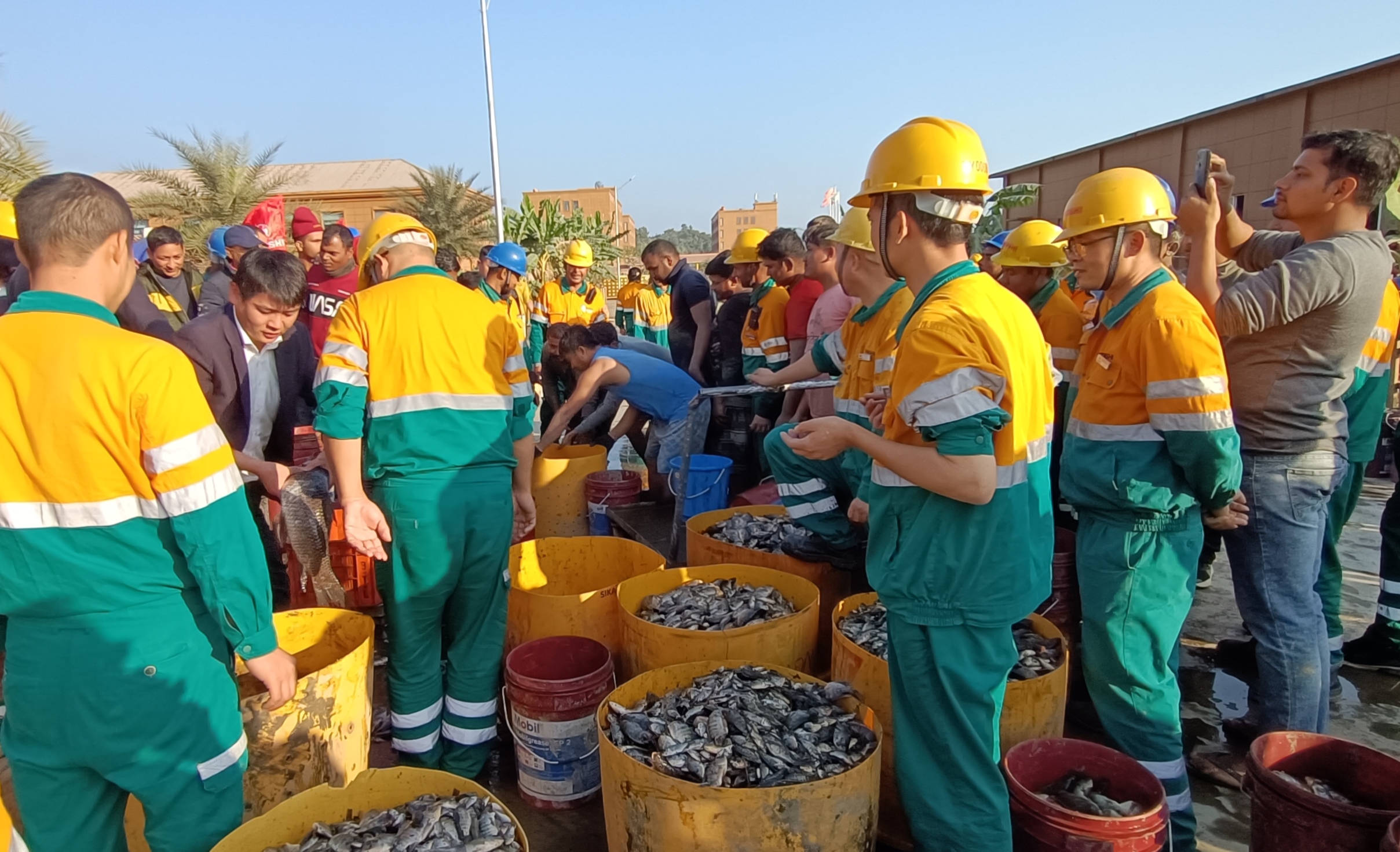 经过两个小时的激烈比拼后,捕鱼比赛落下帷幕。裁判组开始为每个队伍捕到的“战利品”称重,称重现场亦是欢呼不断,大家个个脸上都洋溢着开心的笑容。最终,经过称重,12支队伍共捕到塘鱼1507公斤,制成队获得团体总重量冠军,捕到鱼175公斤,矿山队捕到5.3公斤“鱼王”,获得单条鱼重量冠军,烧成队,制成队,生产调度1队,生产调度2队分别获得单条鱼重量第二名至第五名。