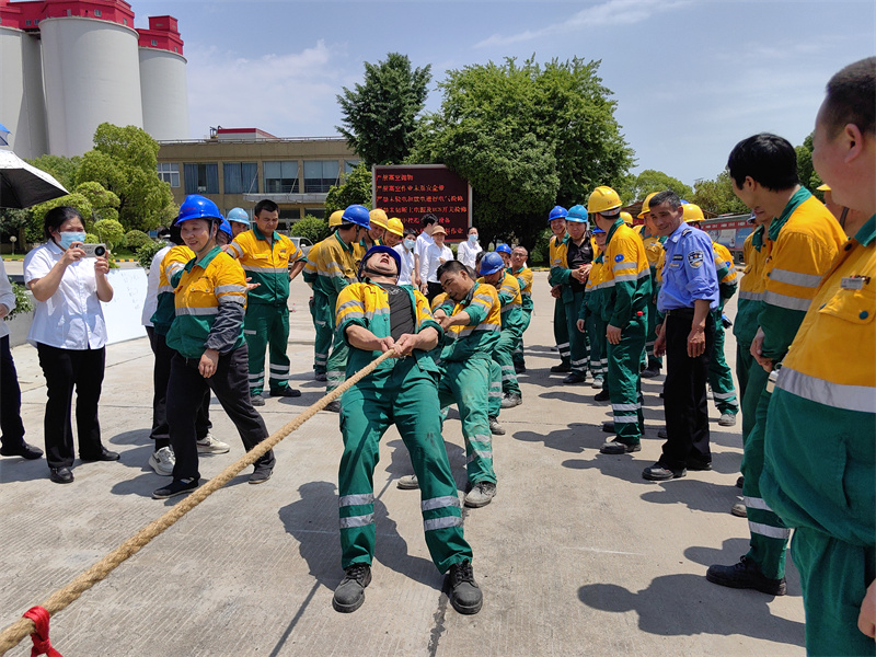 经过一轮又一轮的厮杀,比赛终于到最激烈的一局,冠亚军争夺局。化验室和烧成二队,两支队伍精力已经消耗的差不多了,经过裁判征求双方意见后,决定以一局定胜负。裁判一声令下,选手们咬紧牙关,用力往后拔,中间的红绳一会偏左、一会偏右,双方在拉扯中,互不相让,使劲地拉着绳子,满脸通红,额头上一根根青筋暴起。“加油、加油、冠军、冠军”啦啦队快把喉咙都喊哑了,脚底板都剁麻。最终,化验室队夺得本次拔河比赛冠军!